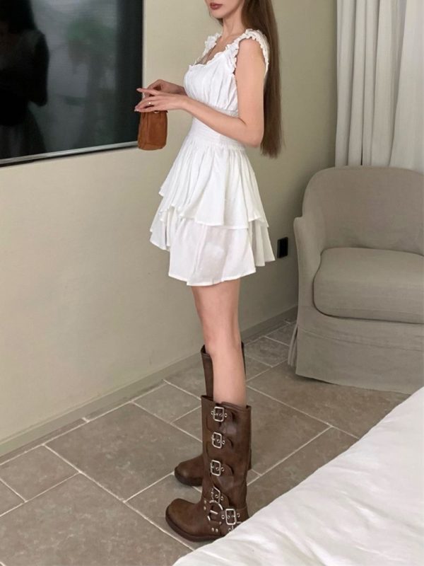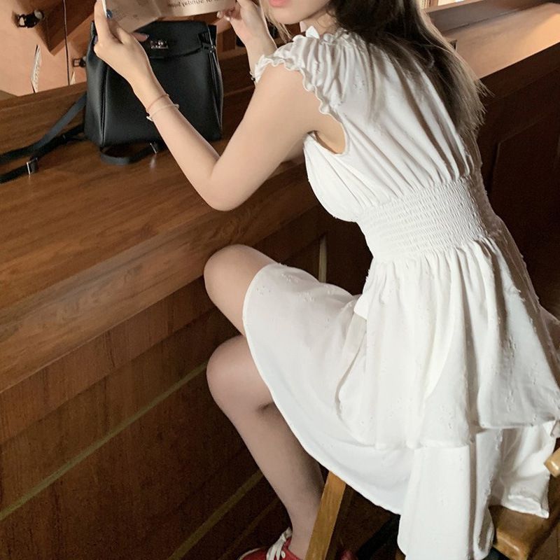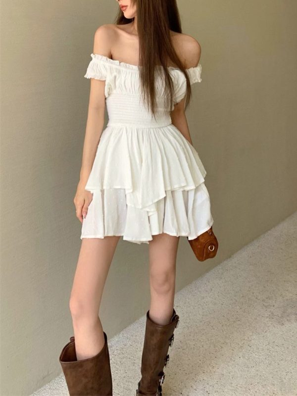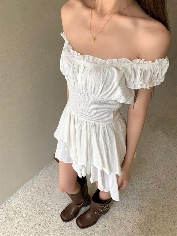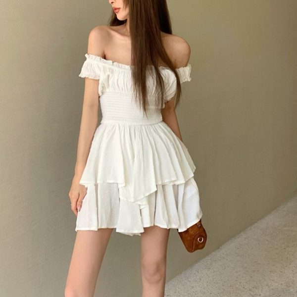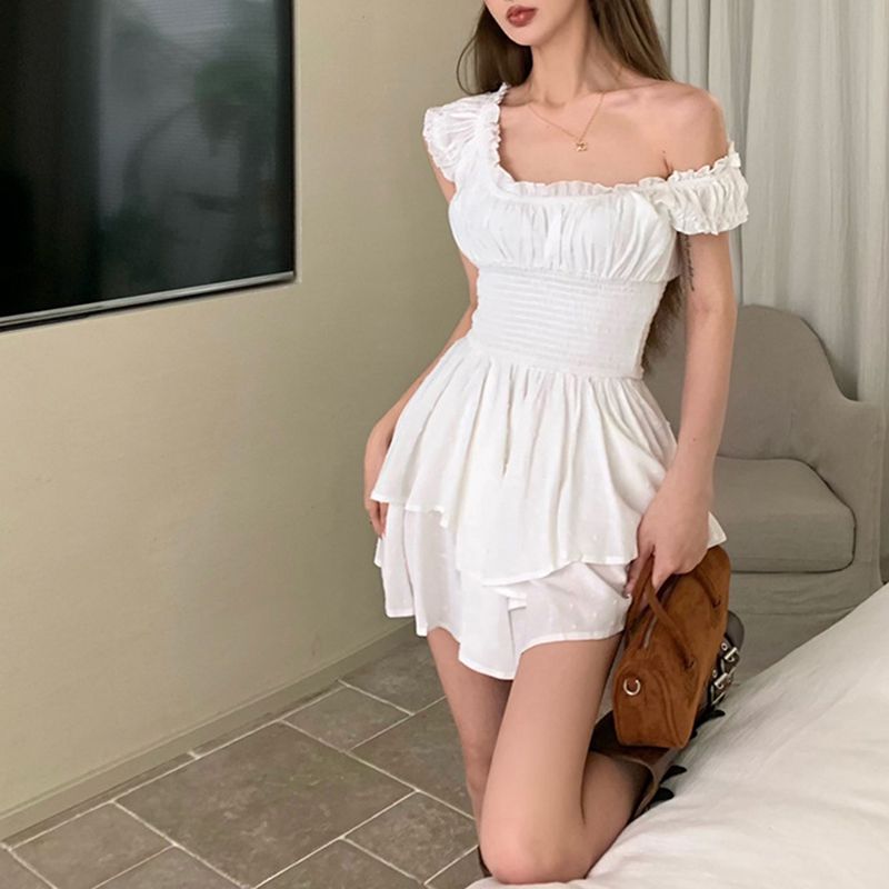 / 3D Dots Smocked Ruffles White Playsuit Romper Layered Jumpsuit Dress