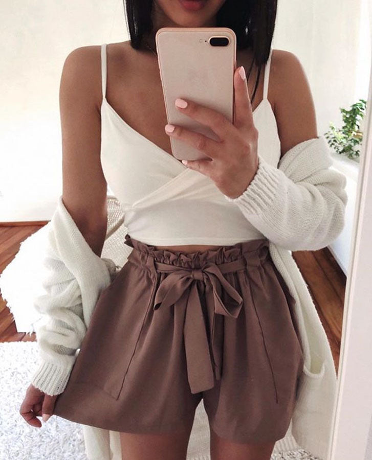 Cotton Crochet Eyelet Waist Tie Shoulder Shorts Romper Jumpsuit