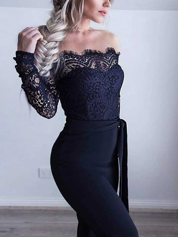 Cozy Lace Off The Shoulder Tie Jumpsuit Pantsuits