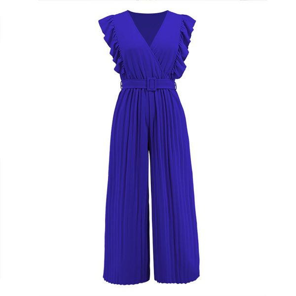 Formal Belted Ruffle Pleated V Neck Wide Leg Palazzo Jumpsuits For Women quantity