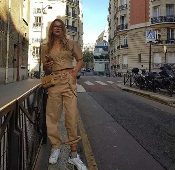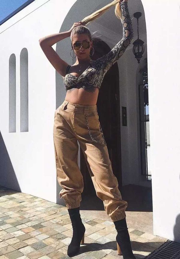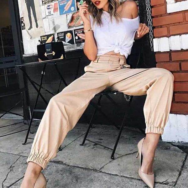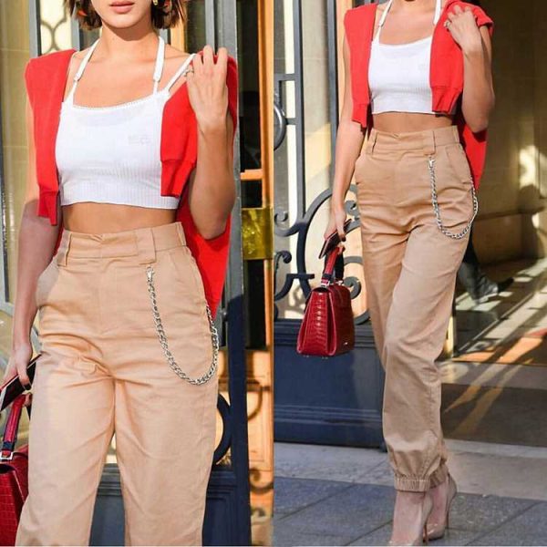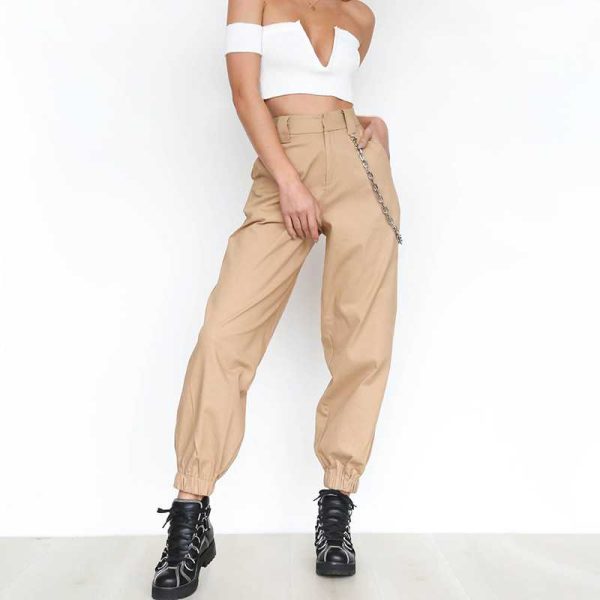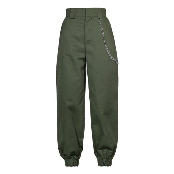 High Waisted Baggy Carrot Trousers Cargo Pants With Chains