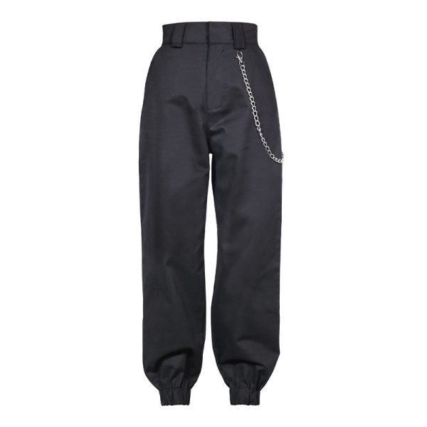 High Waisted Baggy Carrot Trousers Cargo Pants With Chains quantity