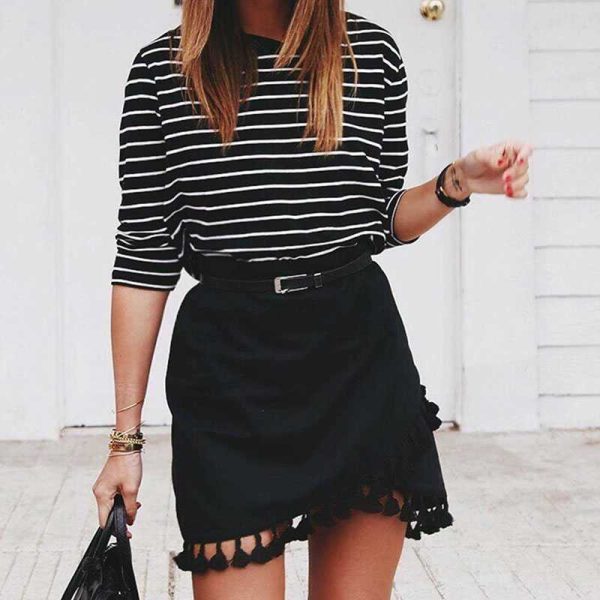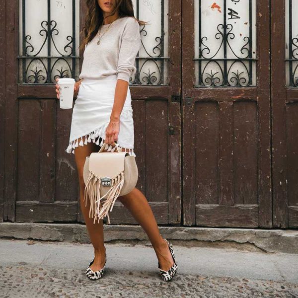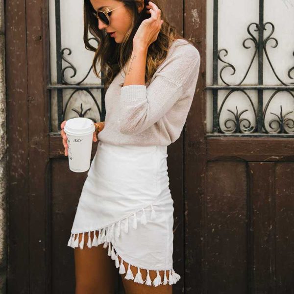 Hipster Tassels High Waist A Line Wraps Mini Skirt